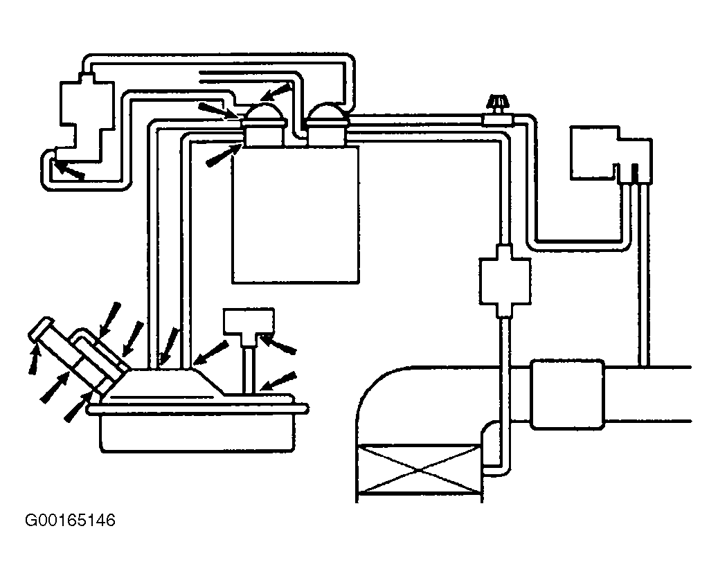 - Check vacuum hoses 4, 5, 7 and 8. See Figure. Check that the vacuum hoses are connected correctly. Check vacuum hoses for looseness and disconnection. Check vacuum hoses for cracks, holes, damage and blockage. Repair as necessary. If okay, go to next step.