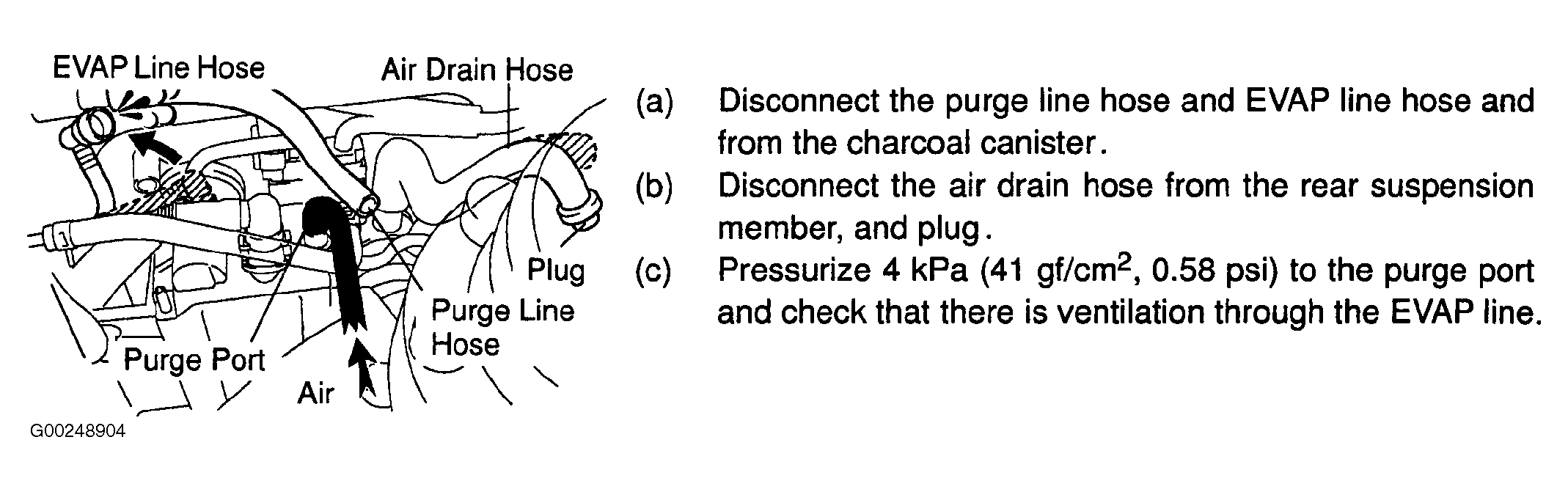 - Check whether hose close to fuel tank has been modified, and check whether there are signs of any accident near fuel tank or charcoal canister. See Figure. Repair as necessary. If okay, go to next step.