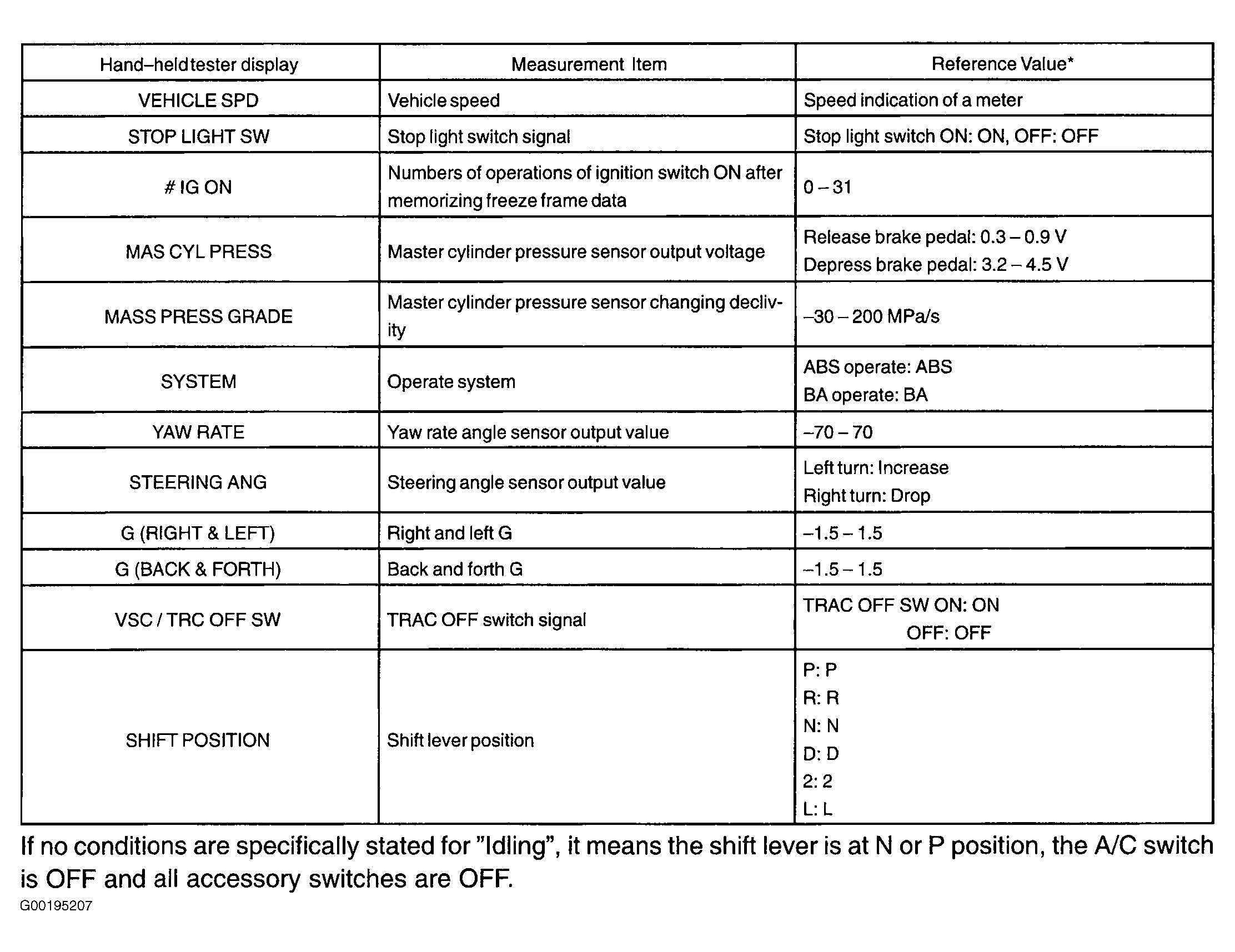 The vehicle (sensor) status at moment of sending diagnosis code, and during ABS operation, can be memorized and displayed using hand-held tester. Only one record of freeze frame data is stored. However, freeze frame data during ABS operation is always updated. After storage of freeze frame data, up to 31 ignition "ON" operations are stored and displayed. If the ignition switch "ON" operation exceeds 31 times, "31" appears on the display. If diagnosis code abnormally occurs, freeze frame data at occurrence of abnormality is stored, but ABS actuation data is deleted. See Fig 1.