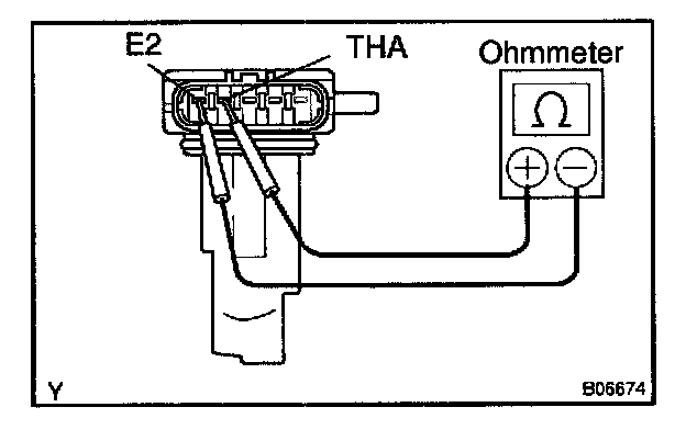 Using an ohmmeter, measure the resistance between terminals THA and E2.