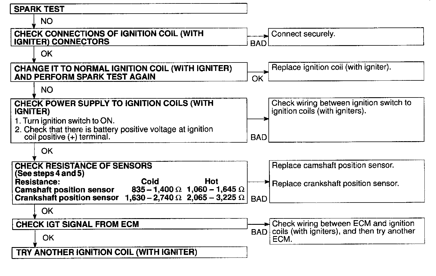 If the spark does not occur, do the test as given: