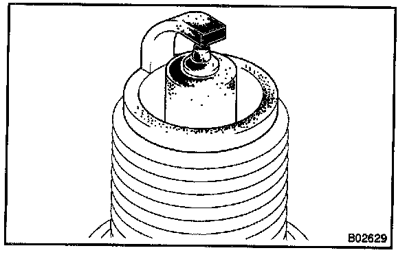 HINT: If there are traces of oil, remove it with gasoline before using the spark plug cleaner.