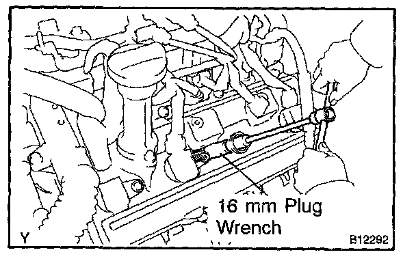 c. Using a 16 mm plug wrench, remove the 8 spark plugs.