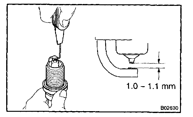 Correct electrode gap: 1.0 mm - 1.1 mm (0.039 - 0.043 in.)