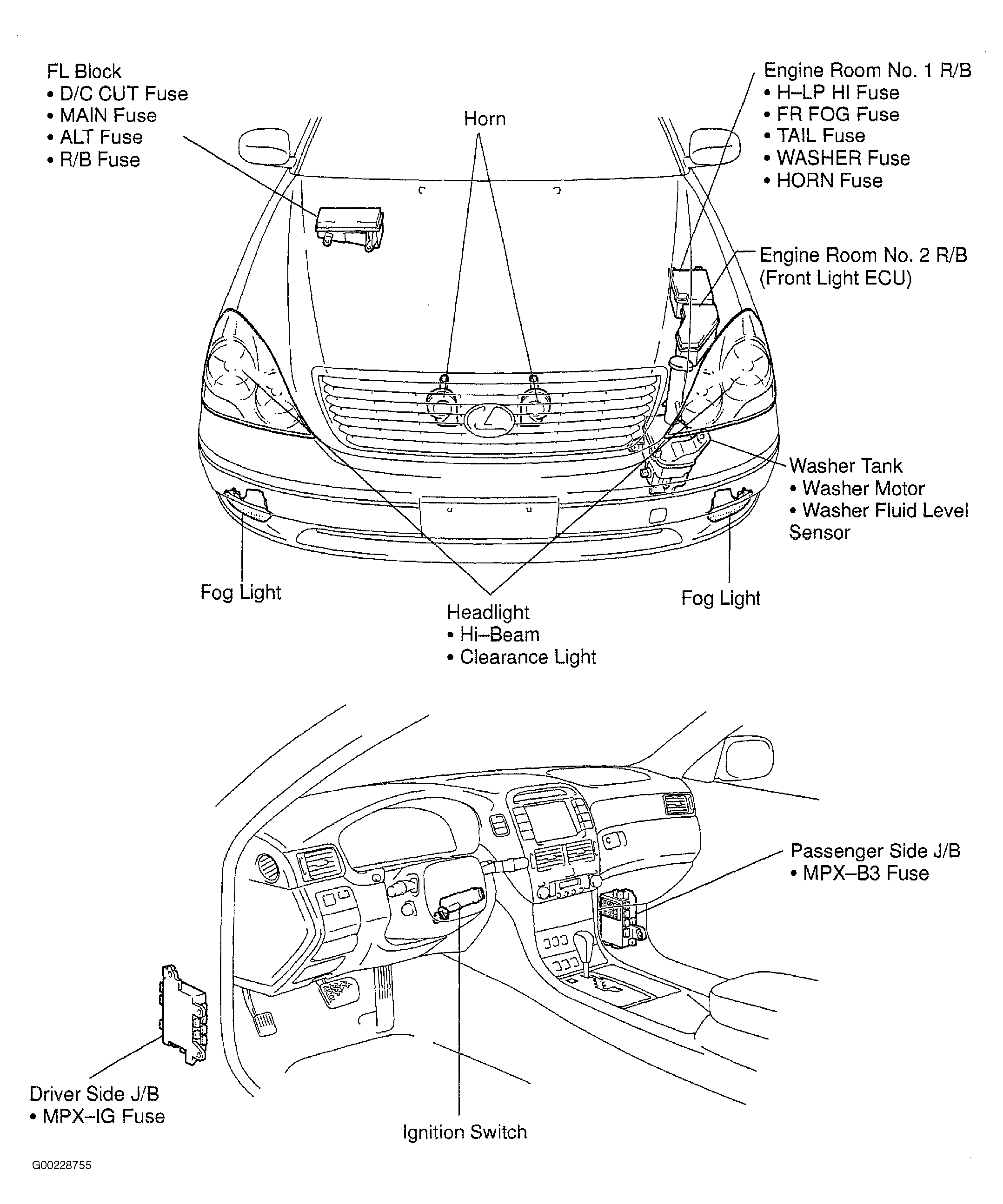 Fig 5: Identifying Front Light (Body No. 5) Control System Component Locations