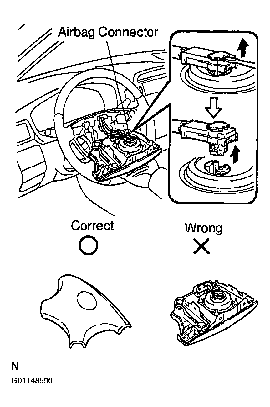 - Remove steering wheel pad.NOTE: If the airbag connector is disconnected with the ignition switch at ON, DTCs will be recorded.
