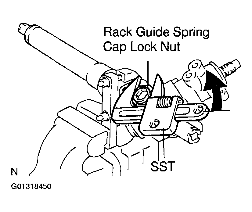 - Using SST, remove the rack guide spring cap lock nut. See Fig 7.