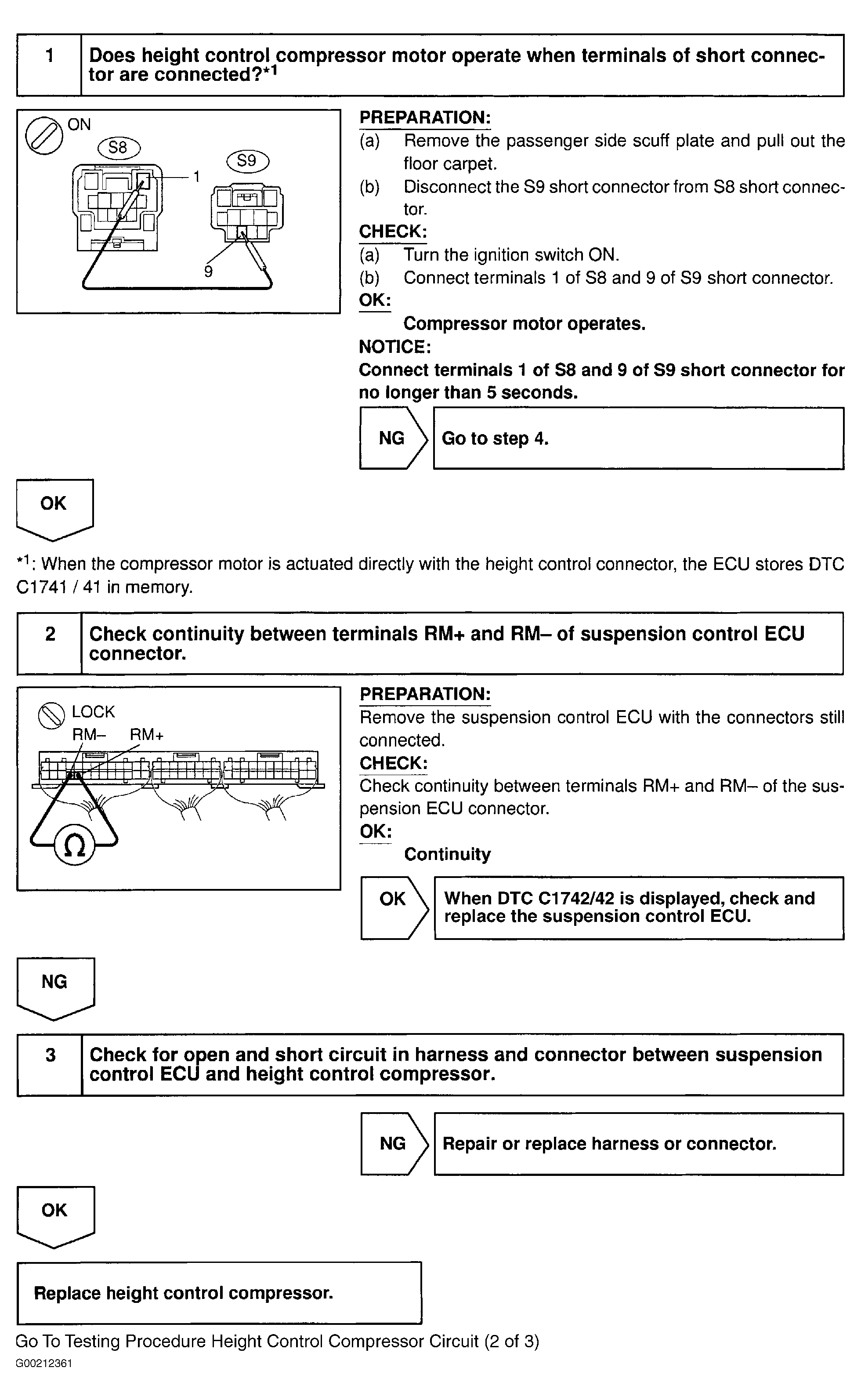 Fig 2: Testing Procedure Height Control Compressor Circuit (1 Of 3)
