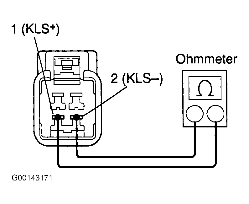 2. Disconnect solenoid connector. Momentarily supply battery voltage to terminal KLS+ and ground terminal KLS-. See Fig 2. Ensure an operating sound is heard. If the solenoid does not operate, replace the solenoid. See KEY INTERLOCK SOLENOID  under REMOVAL & INSTALLATION.