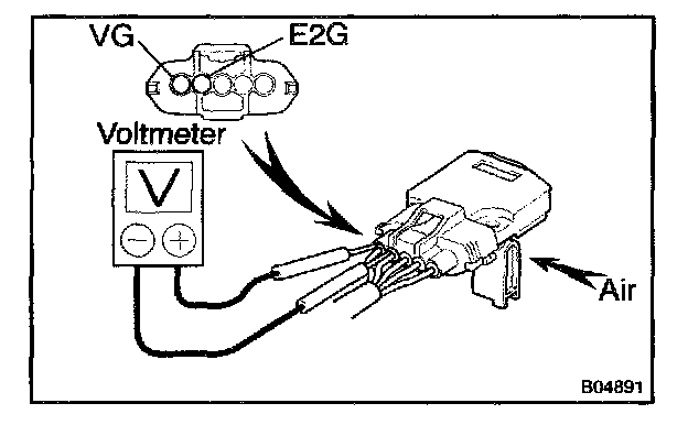 4. Using a voltmeter, connect the positive (+) tester probe to terminal VG, and negative (-) tester probe to terminal E2G.