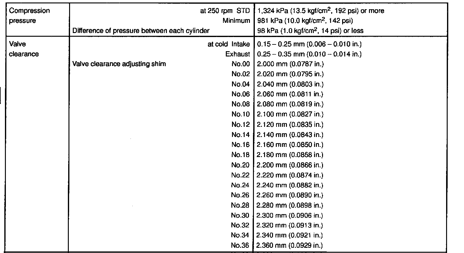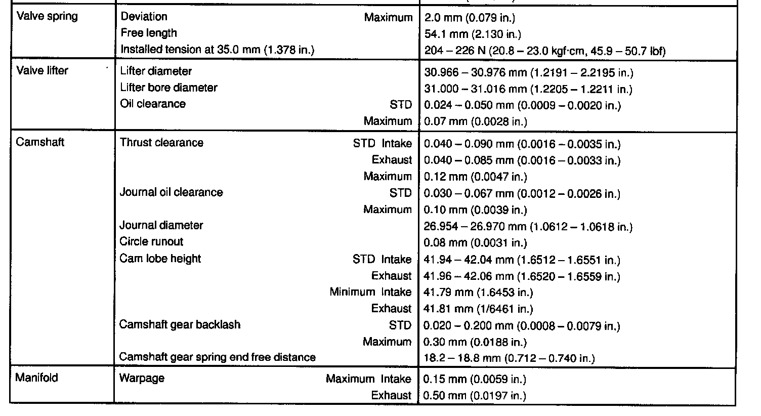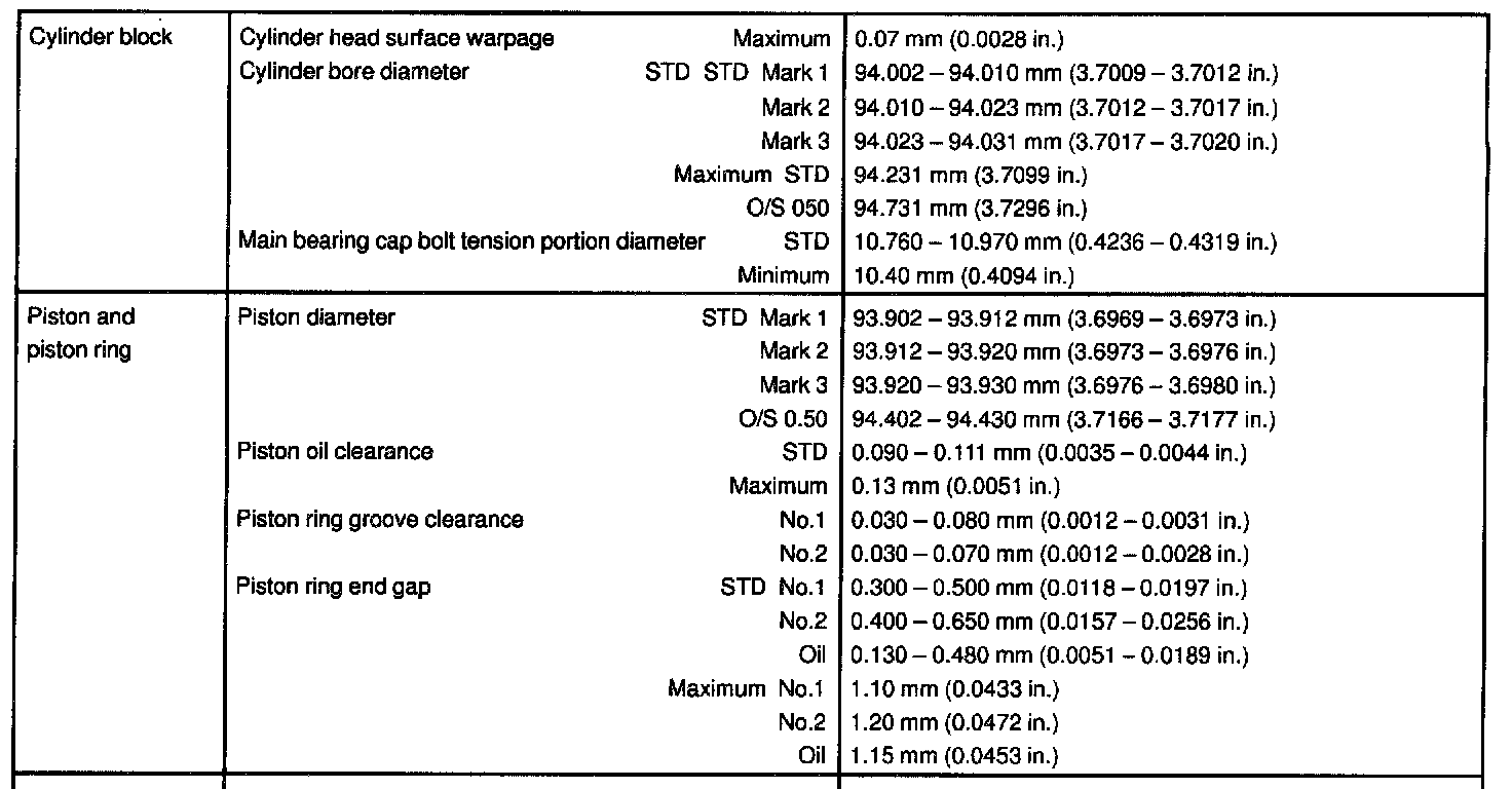 2UZ-FE Engine Mechanical Data: