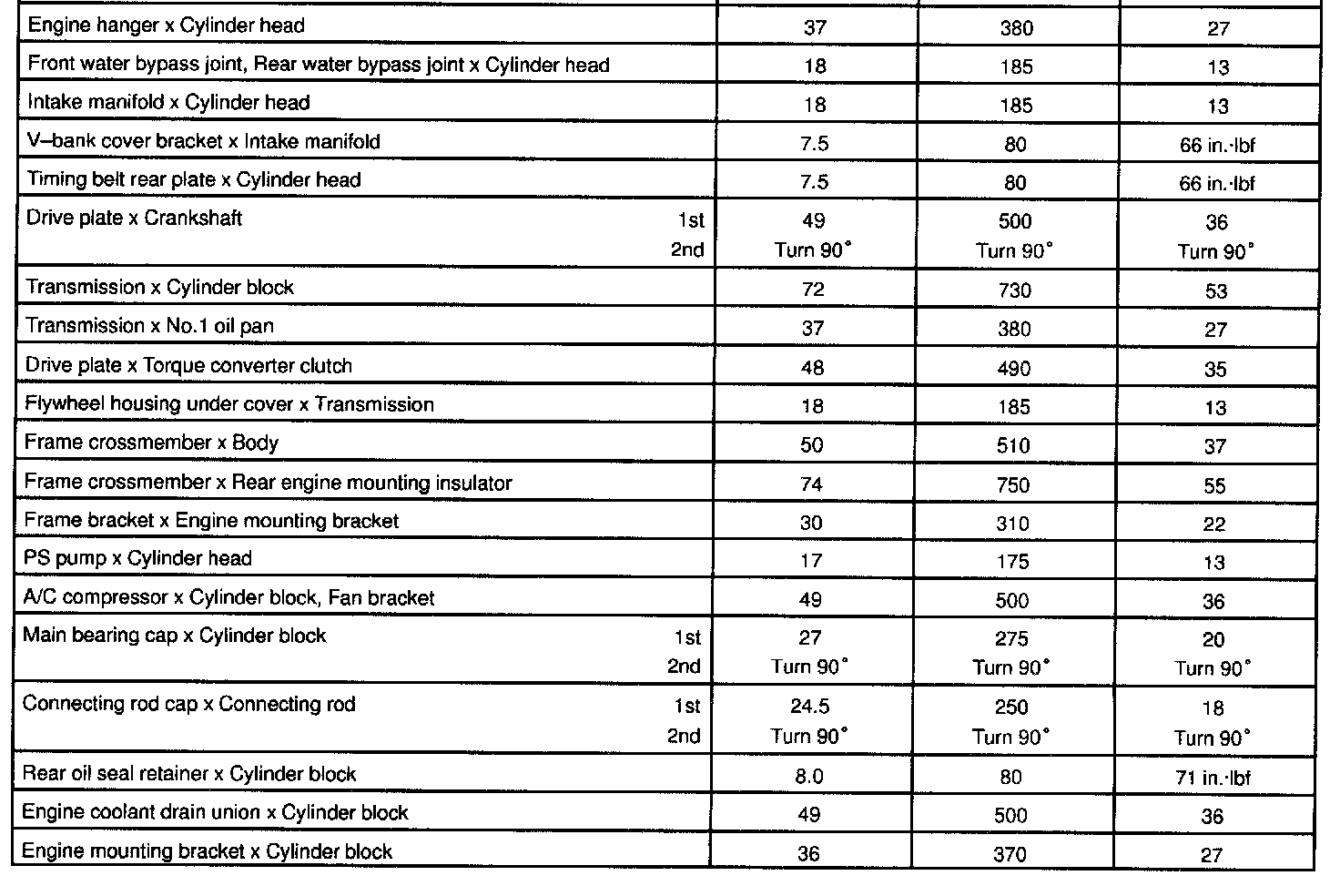 2UZ-FE Engine Mechanical Torque: