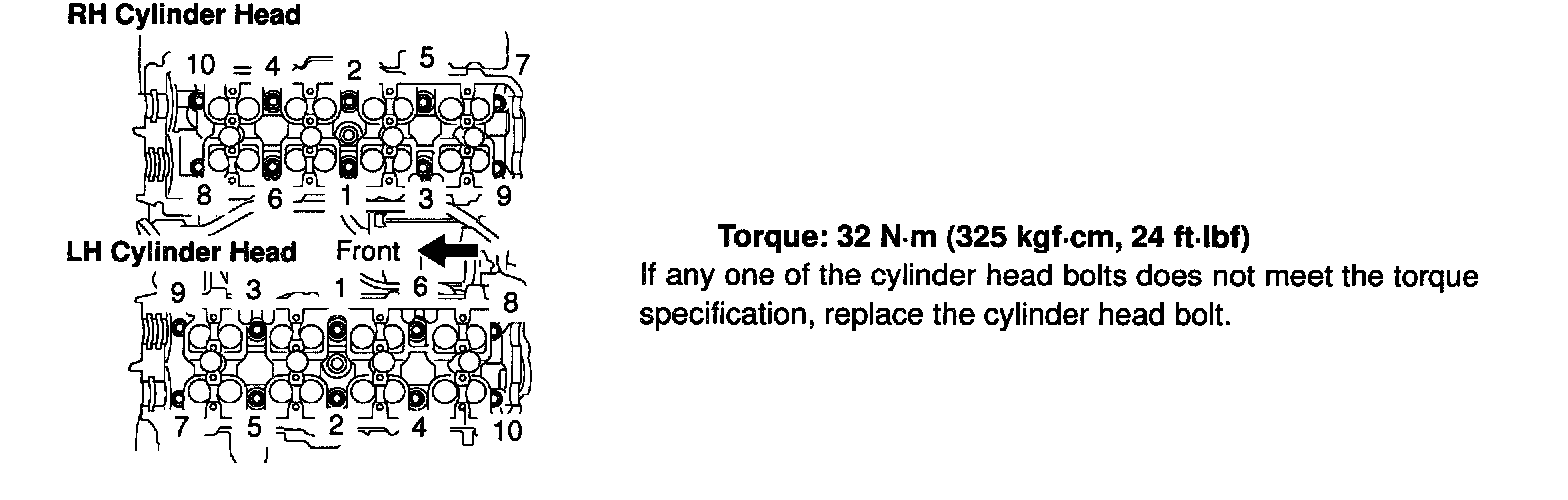 2UZ-FE Cylinder Head Torque & Sequence: