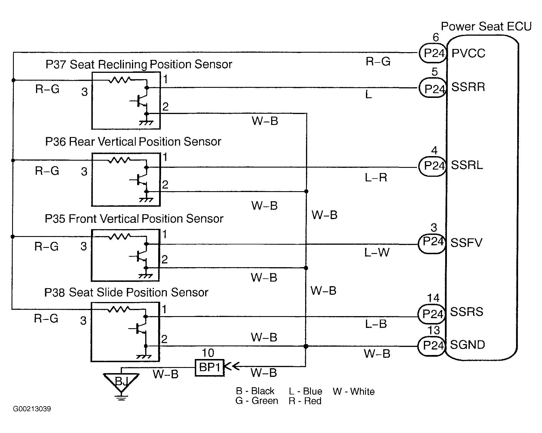 This circuit provides power to the slide, front vertical and reclining position sensors. See
