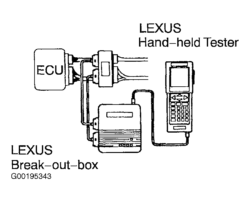 - Connect LEXUS break-out-box and LEXUS hand-held tester to vehicle. See Fig 1.