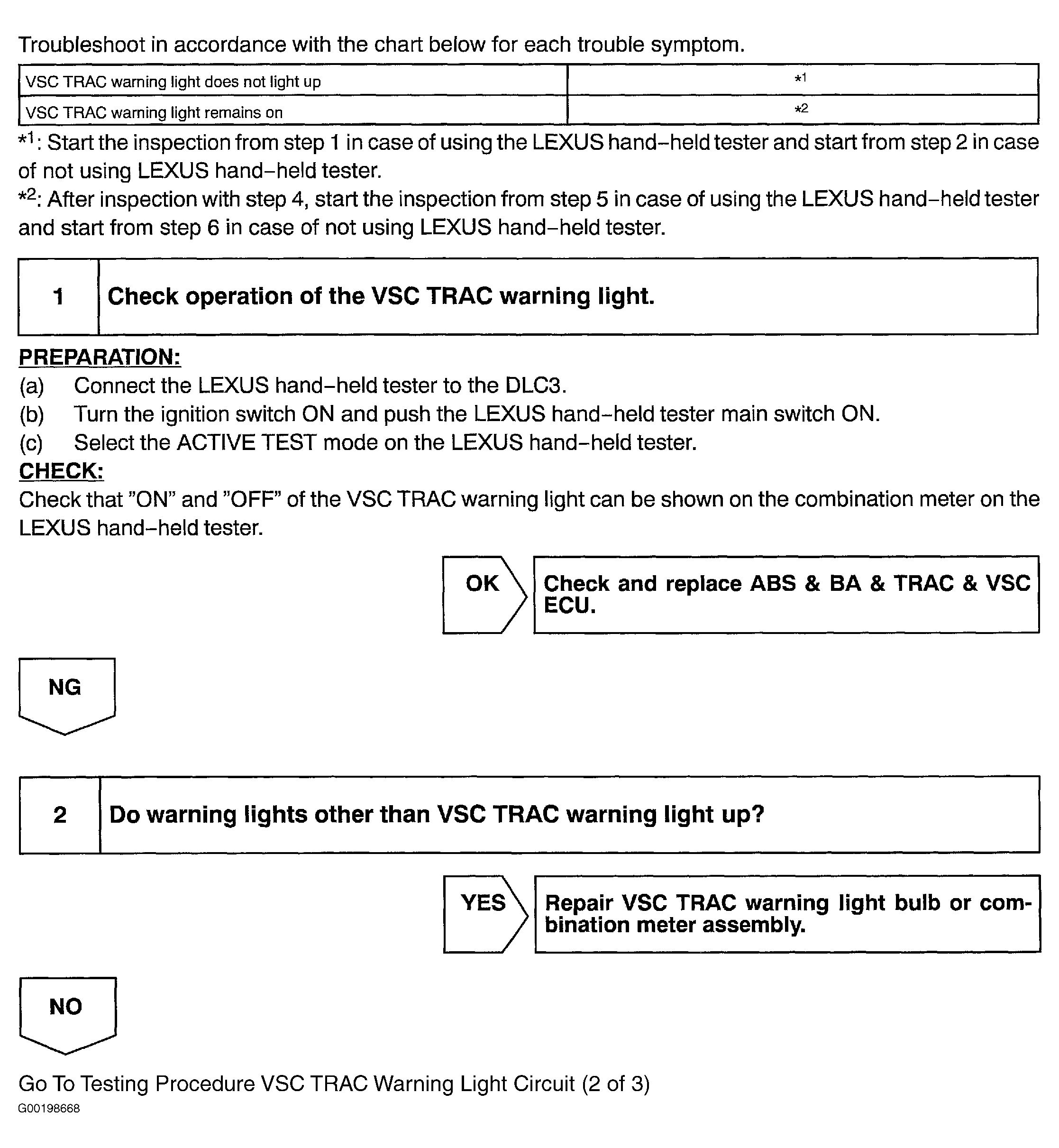 Fig 2: Testing Procedure VSC TRAC Warning Light Circuit (2 Of 3)