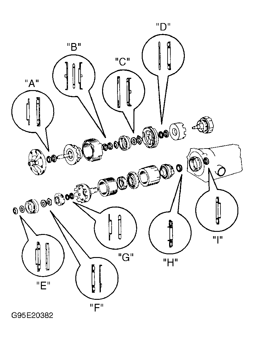 Note locations of all thrust bearings, thrust races and thrust washers for reassembly reference. See Figure.