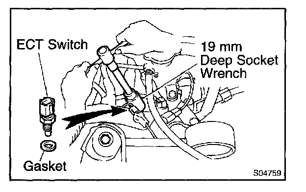 b. Using a 19 mm deep socket, install the ECT sensor.