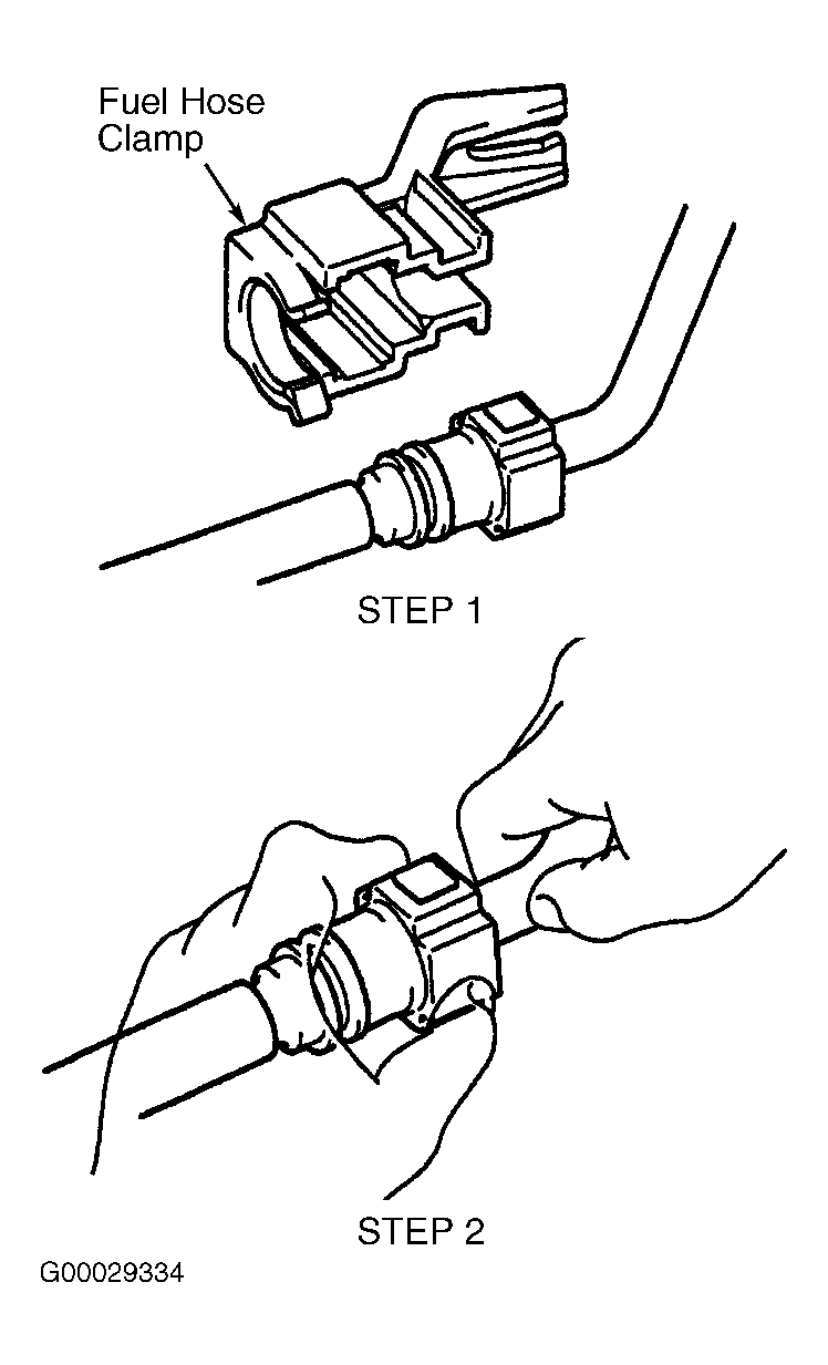 - Reinstall fuel pipe clamp until "click" sound is heard. Pull upward on fuel pipe clamp to ensure clamp is securely locked on fuel inlet pipe. Install negative battery cable. Check for fuel leaks by using scan tool to energize fuel pump.