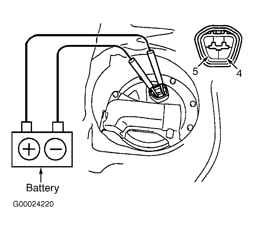 (1) Check fuel pressure with engine off. Using scan tool connected to DLC3 under driver's side of dashboard, turn ignition on to activate fuel pump. If scan tool is not available, connect battery voltage to terminal No. 4, and ground terminal No. 5 on electric fuel pump. See Fig 1.
