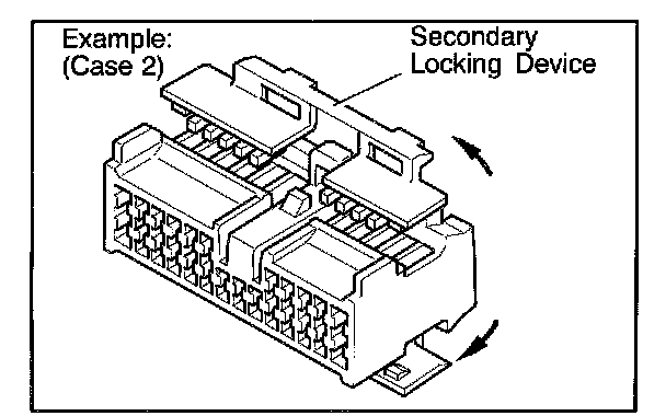 b. Use a special tool or the terminal pick to unlock the secondary locking device or terminal retainer.