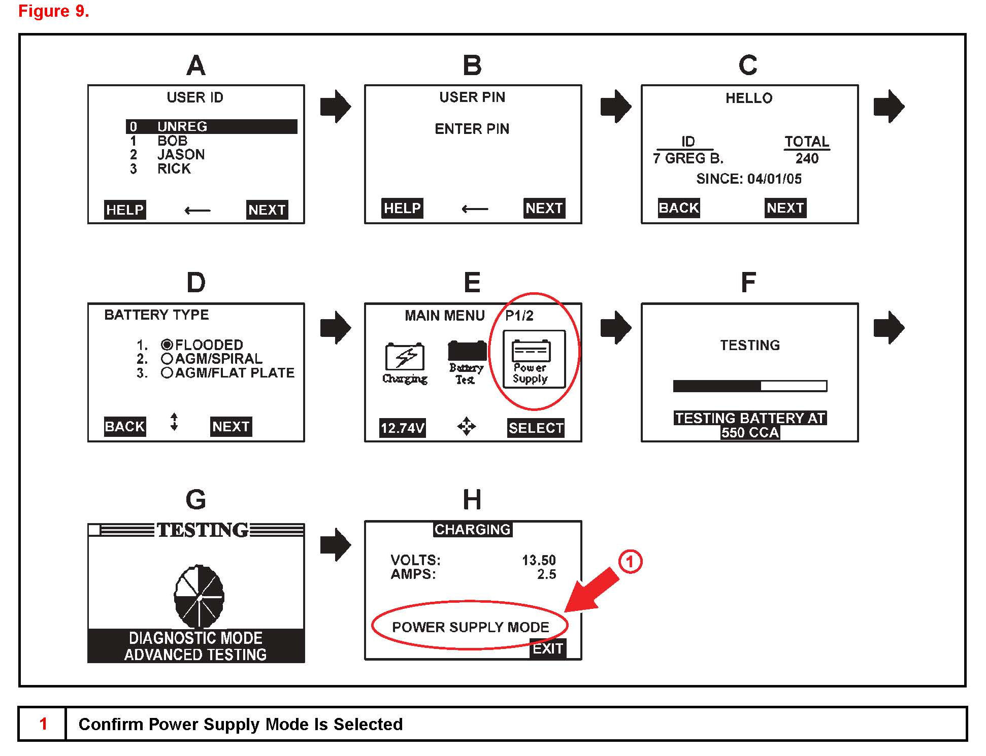 2. Connect the GR8 Battery Diagnostic Station using "Power Supply Mode" only.