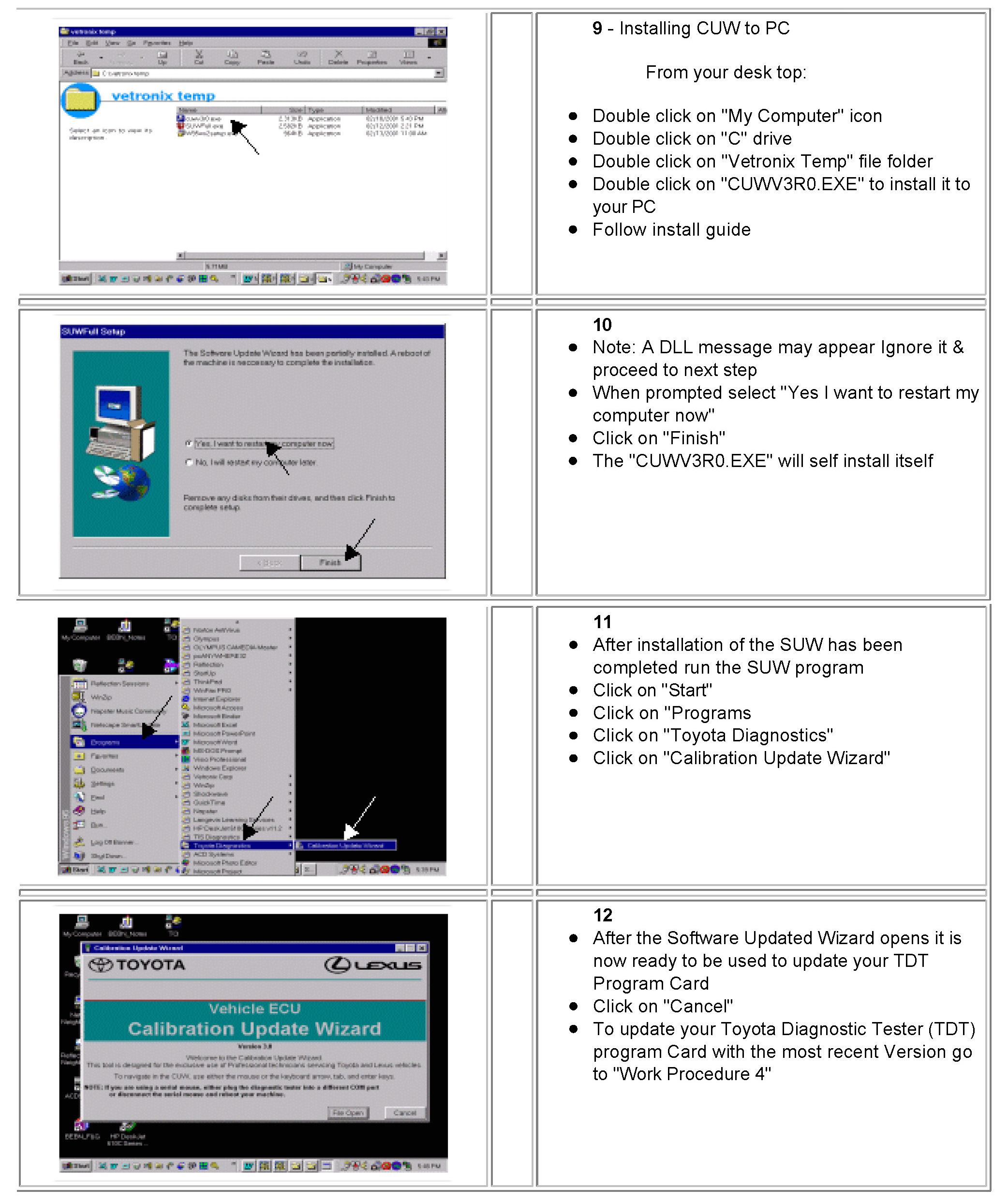 1. Download and install the Calibration Update Wizard (CUW) from CD to your PC. The Calibration Update Wizard is a new application that will allow you to reprogram the vehicle ECU using your TDT.