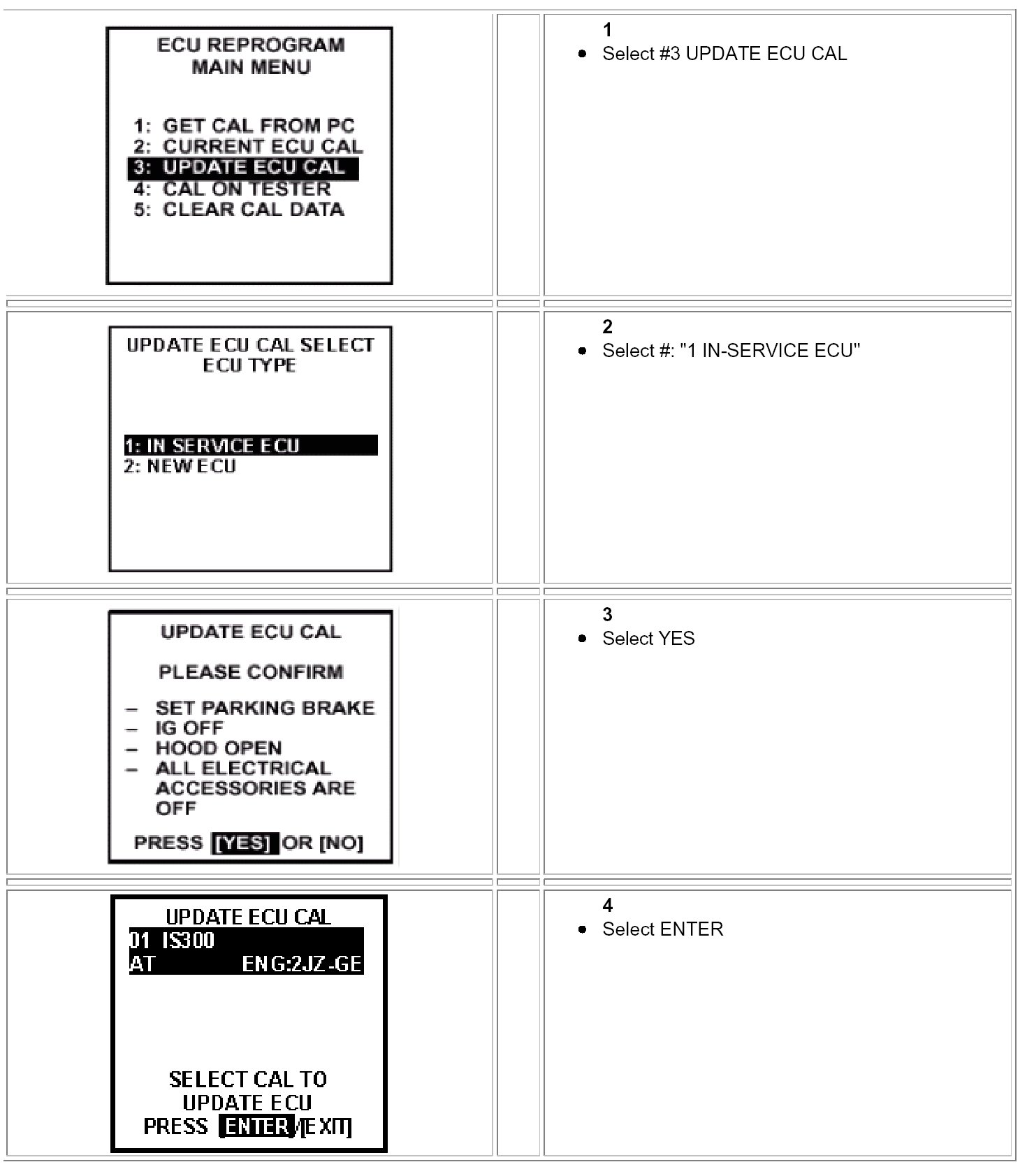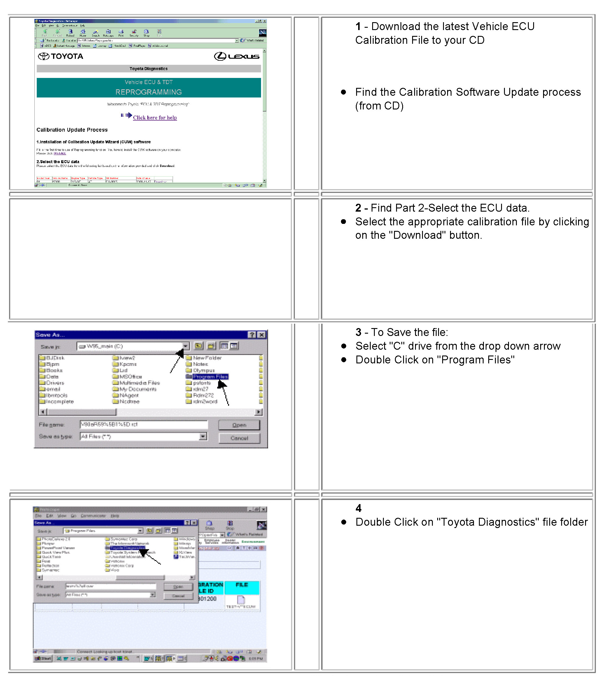 Flash Calibration updates for specific models/ECU will be released as field fix procedures described in individual service bulletins. This bulletin details the ECU flash reprogramming process, the applications within the CD provided and the Toyota/Lexus diagnostic Tester used for reprogramming.