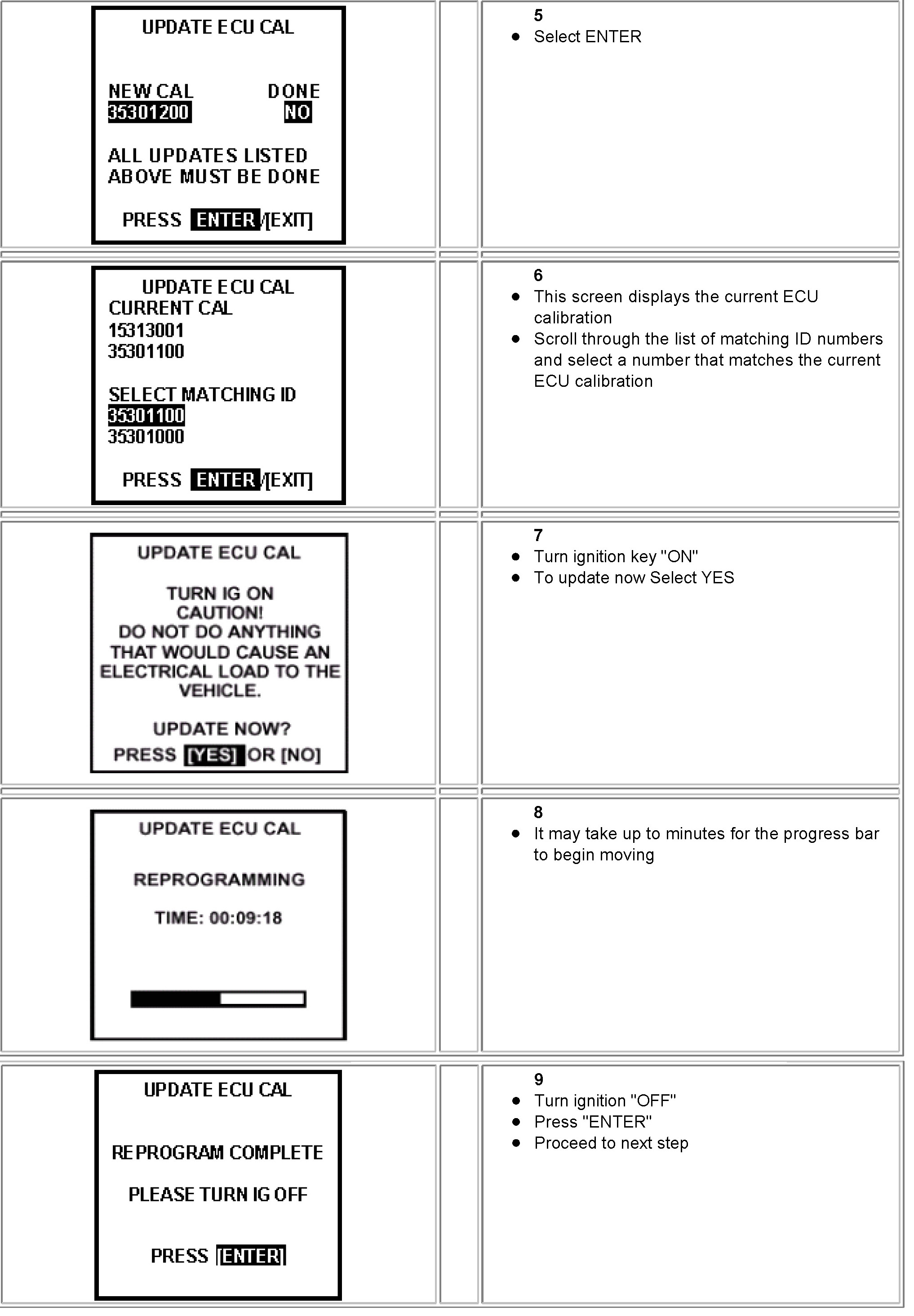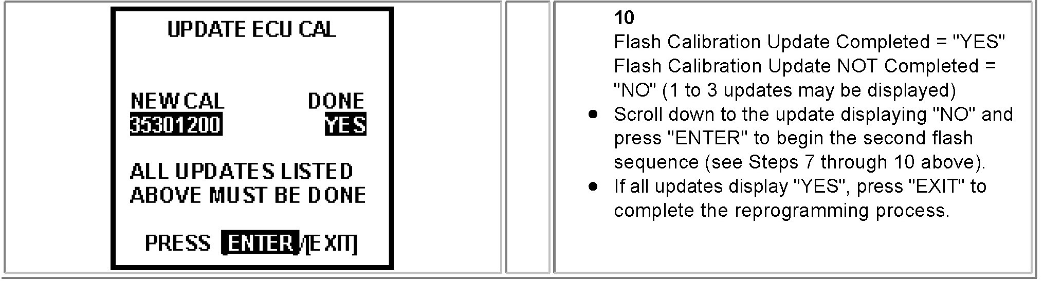 - All updates must display "YES" to complete the entire calibration file update for the vehicle ECU.