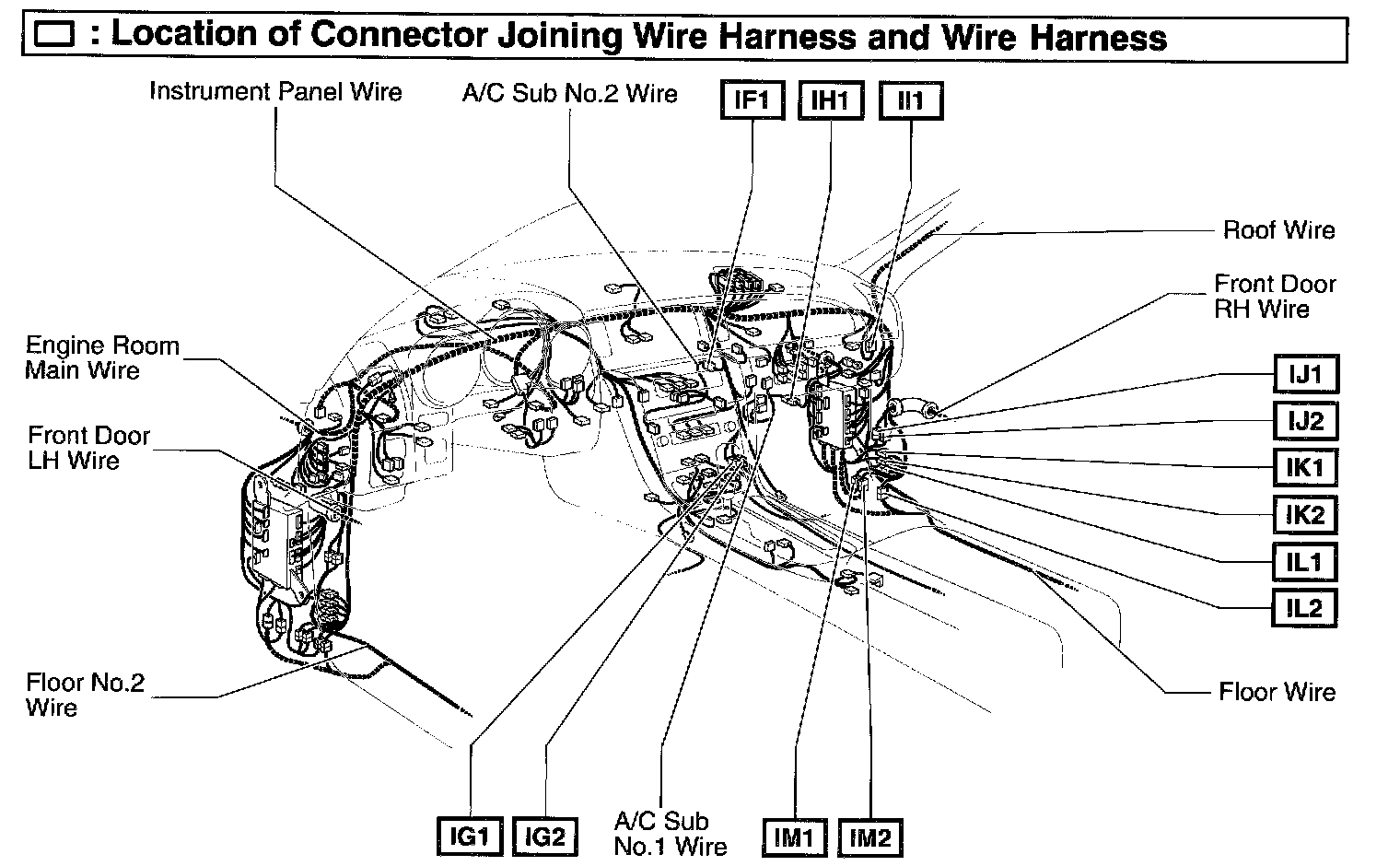 IH1 Engine Room Main Wire and A/C Sub No.1 Wire (Near the Passenger Side J/B)