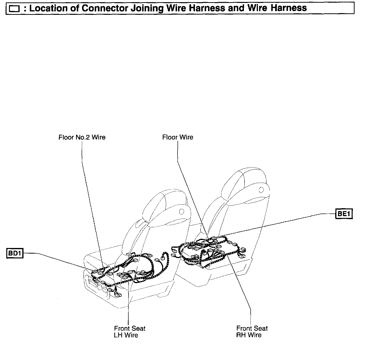 BD1 Floor No.2 Wire and Front Seat LH Wire (Under the Driver's Seat)