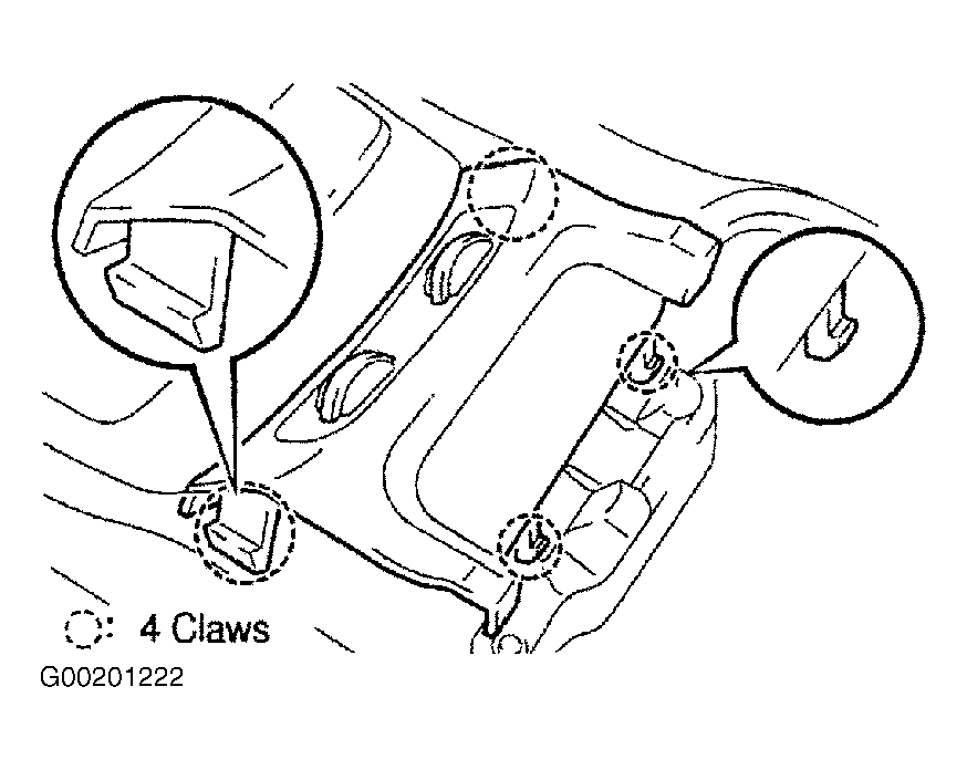8. Disengage the 3 clips, 2 claws and remove the instrument panel under cover sub-assembly No. 2.