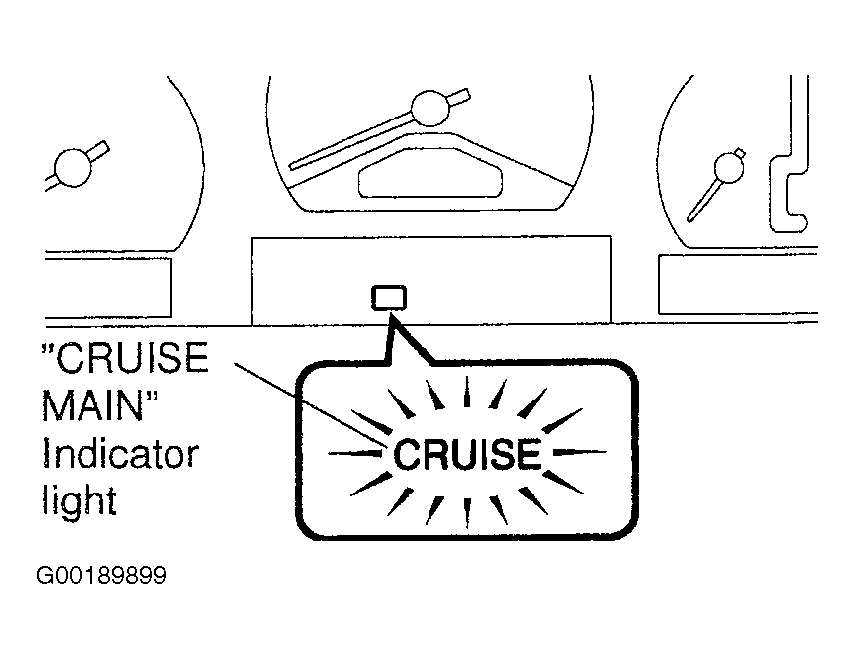 - Check that the CRUISE indicator light comes on when the cruise control main switch is turned ON, and that the indicator light goes off when the main switch is turned OFF. See Fig 1.