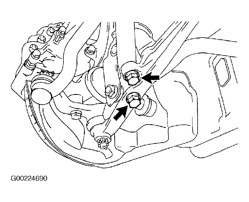 - Install bolts and lower control arm assembly. See Figure. After stabilizing suspension, tighten to specification. See TORQUE SPECIFICATIONS .