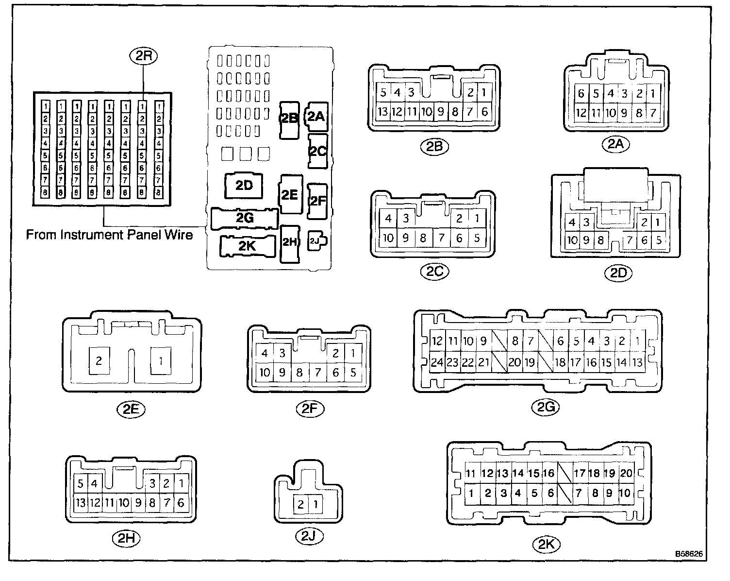 a. Disconnect the 2B, 2F and 2G driver side J/B connectors.