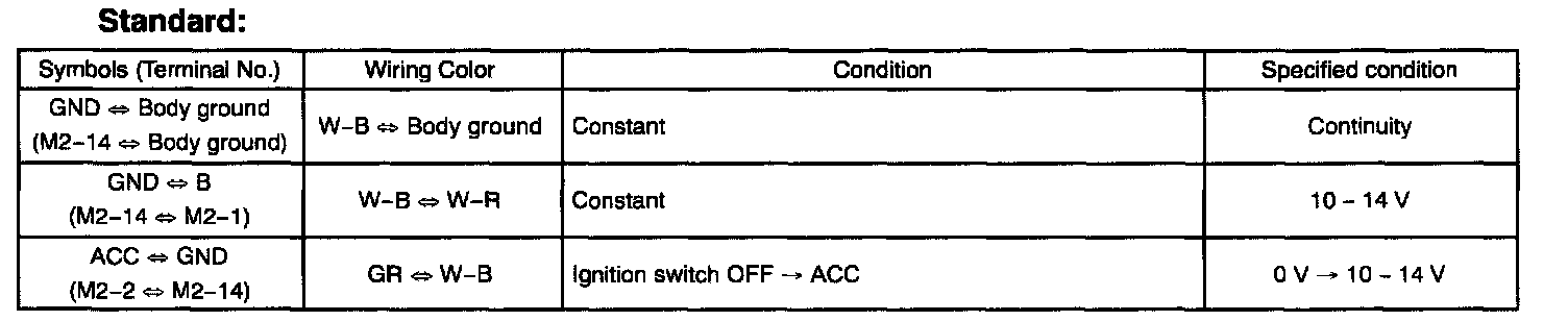 c. Connect the M2 connector, and check the voltage between each terminal of the connector.