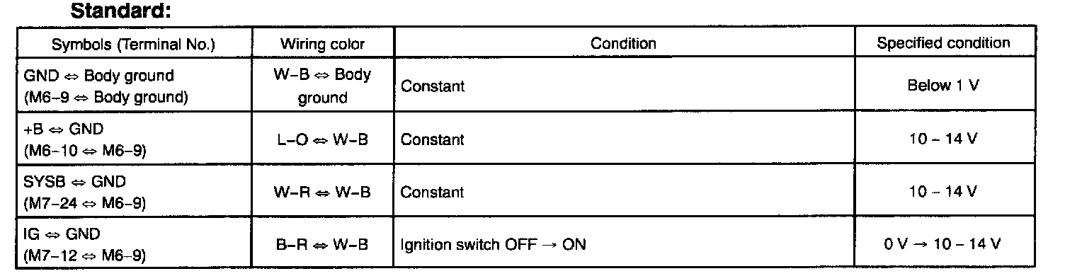 a. Disconnect the M6 and M7 position control ECU connectors, and check the voltage of each terminals of the disconnected connectors.