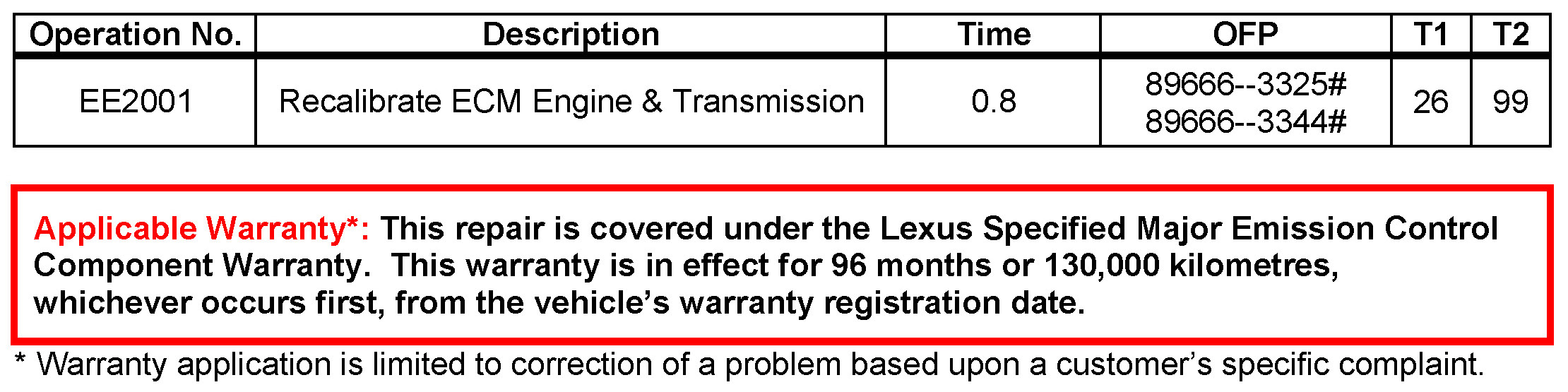 2002 model year ES 300 vehicles, which have been flash reprogrammed using the procedures in this TSB, will contain upgraded 2003 model year OBD II logic. Refer to the 2003 model year ES 300 Repair Manual information on ETAS when checking Powertrain Diagnostic Trouble Codes (DTCs) on 2002 model year ES 300 vehicles that have been reprogrammed.