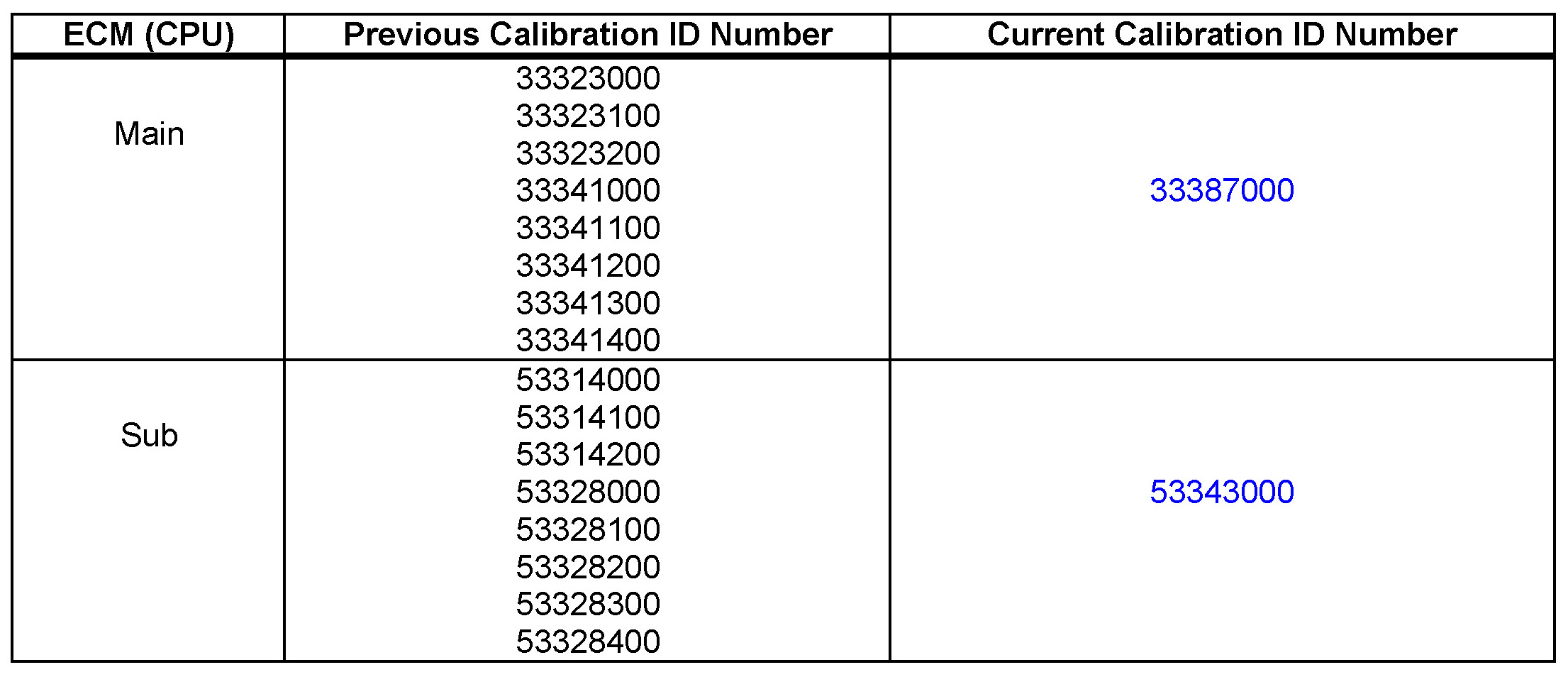 3. If ECU calibration ID is not the same as the "New Calibration ID" listed previously, proceed to Flash Reprogram ECM.