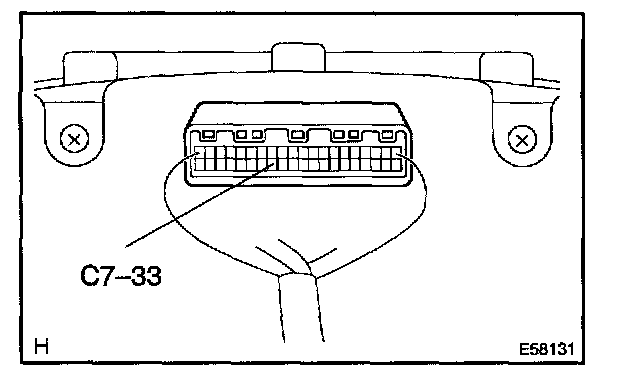 1. While driving the vehicle at the speed of 10 km/h, check the voltage between the terminals C7-33 of the combination meter assy and body ground.