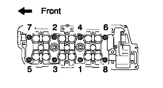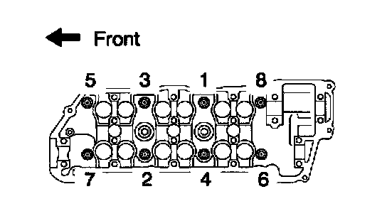 c. Install and uniformly tighten the 8 cylinder head bolts, in several passes, in the sequence shown.