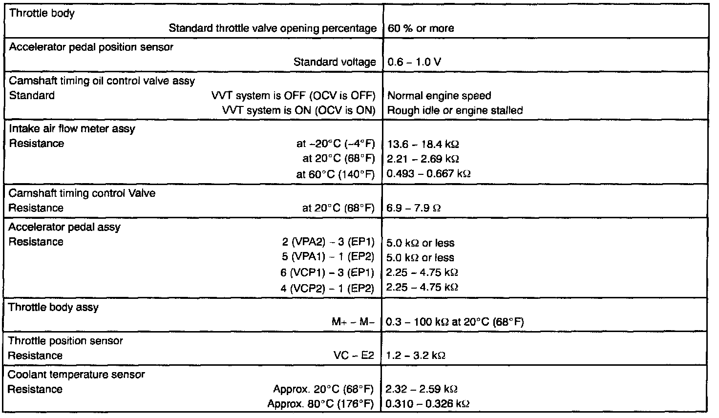 Engine Control System Service Data