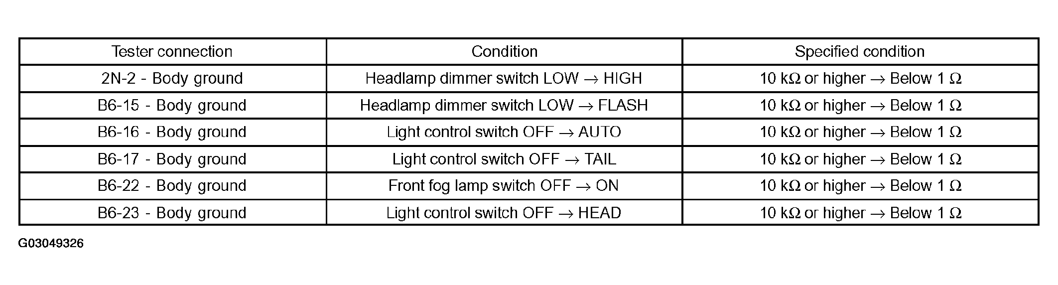 - Inspect light control switch (when headlamp is malfunctioning).