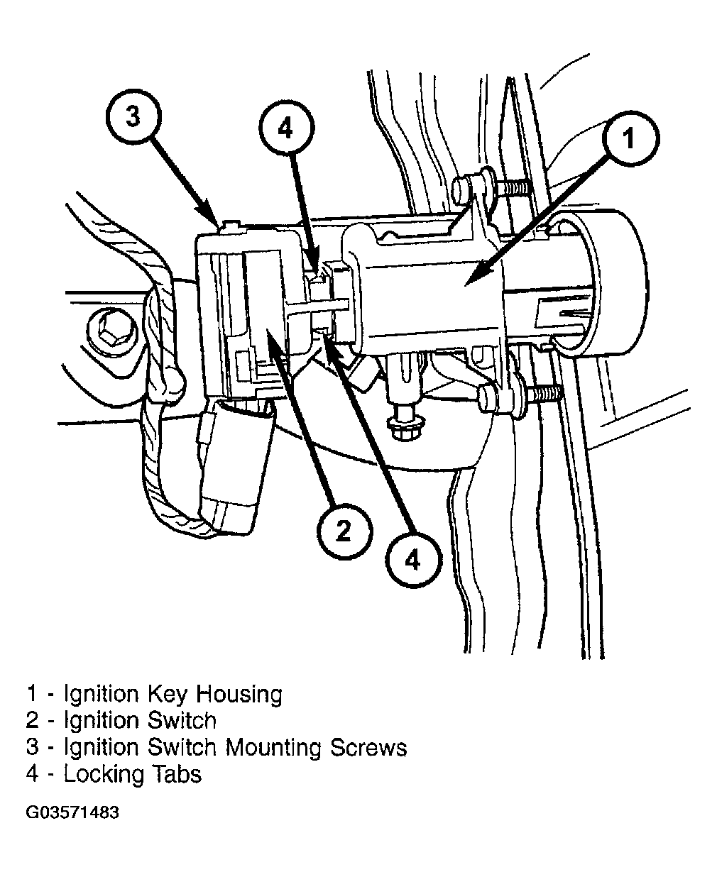 The ignition switch attaches to the lock cylinder housing on the end opposite the lock cylinder. For ignition switch terminal and circuit identification, refer to SYSTEM WIRING DIAGRAMS .
