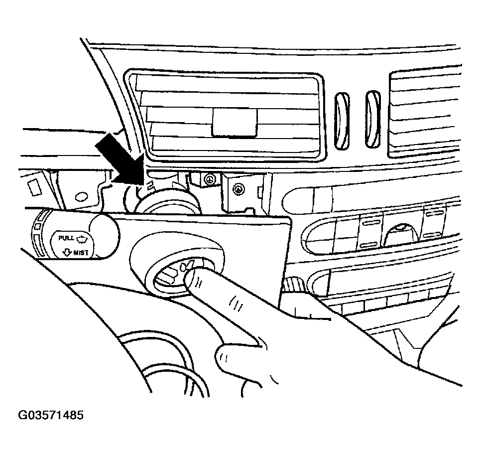 1. Install key in lock cylinder. Turn key to "ON" position (retaining tab on lock cylinder can be depressed).