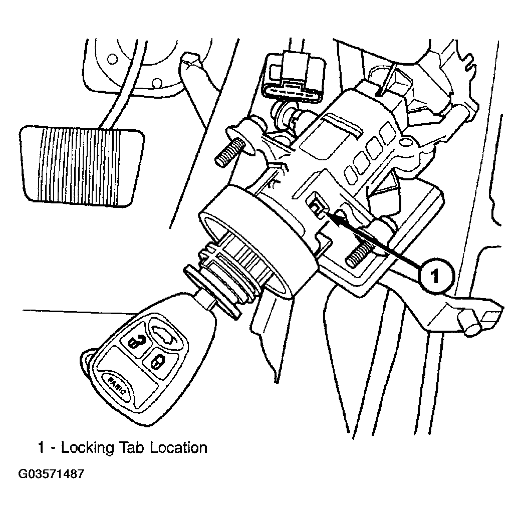 - Depress the locking tab on the ignition switch housing (Fig 2).