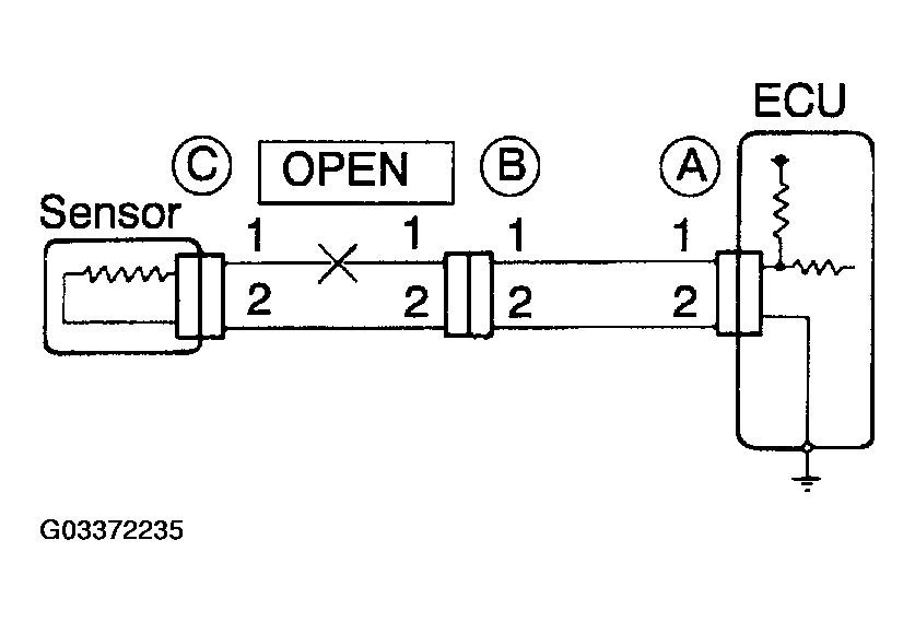 Then it is found out that there is an open circuit in the wire harness between terminal 1 of "B" and terminal 1 of "C".