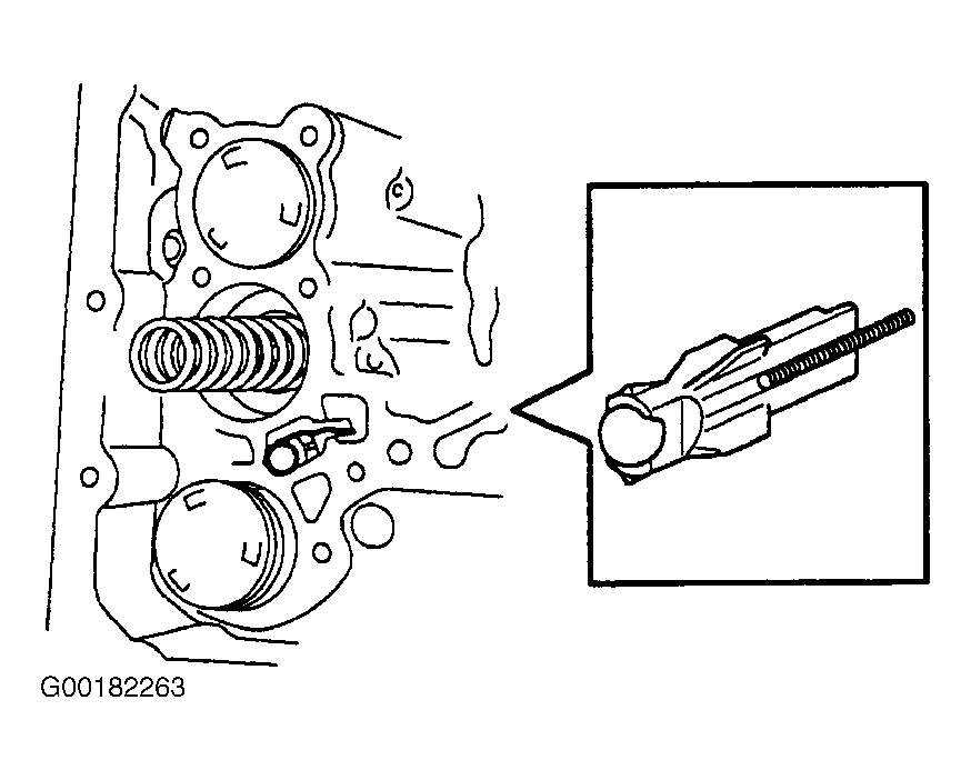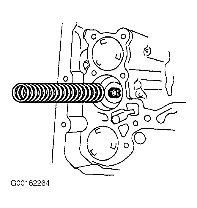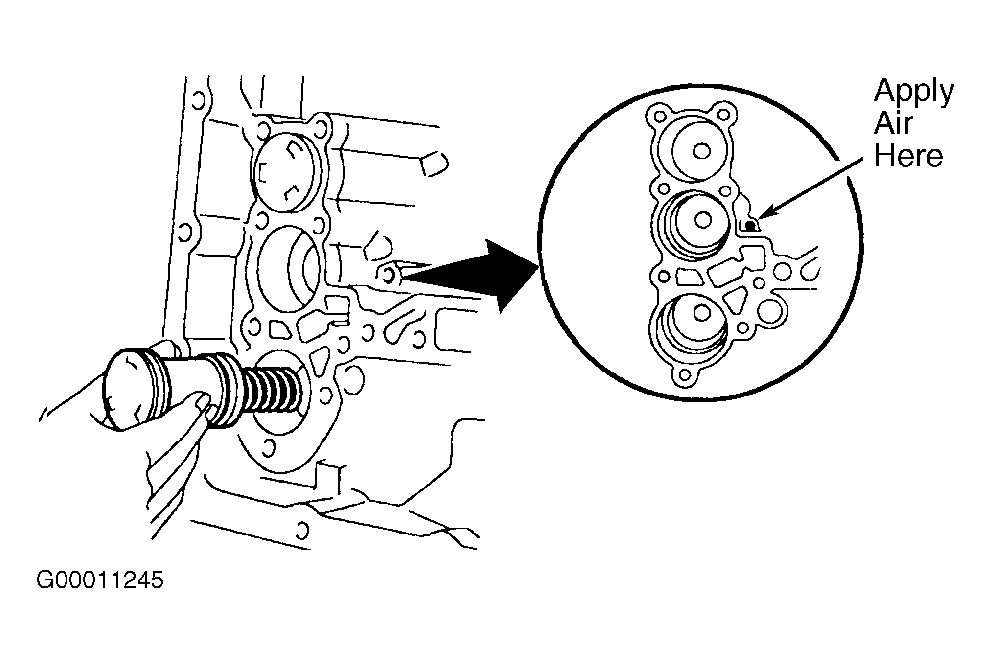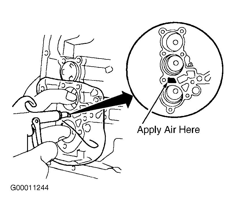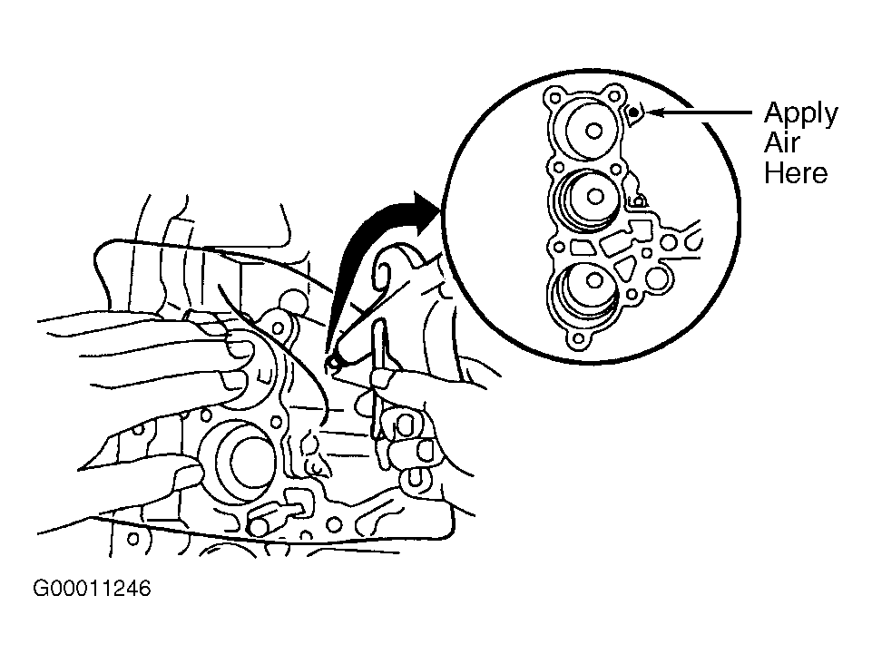 - Using 57 psi (4 kg/cm2 ) of compressed air applied to transaxle case, remove reverse clutch accumulator piston and spring, and underdrive brake accumulator piston with 2 springs. Cover pistons with shop towel during removal. See Fig 10 and Fig 11 . Remove and discard "O" rings from pistons.