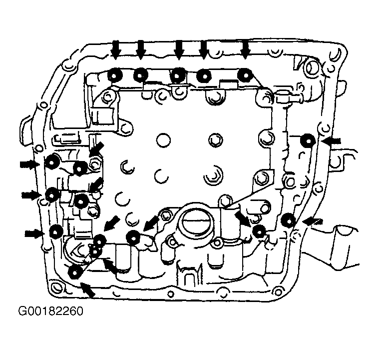 - Place transaxle on wooden blocks. Remove 18 bolts, oil pan and gasket. Remove 3 magnets from oil pan. See Fig 2. Disconnect 7 shift solenoid valve connectors. Remove bolt, lock plate and ATF temperature sensor. See Fig 3. Remove bolt and transaxle wiring harness with solenoid connectors from transaxle case. Remove 3 bolts, oil strainer and gasket. Remove 17 bolts and valve body assembly. See Fig 4.