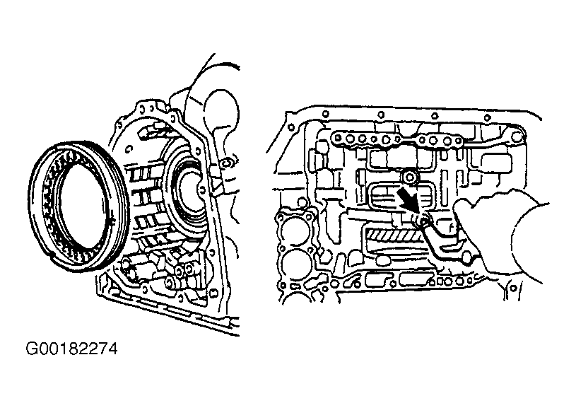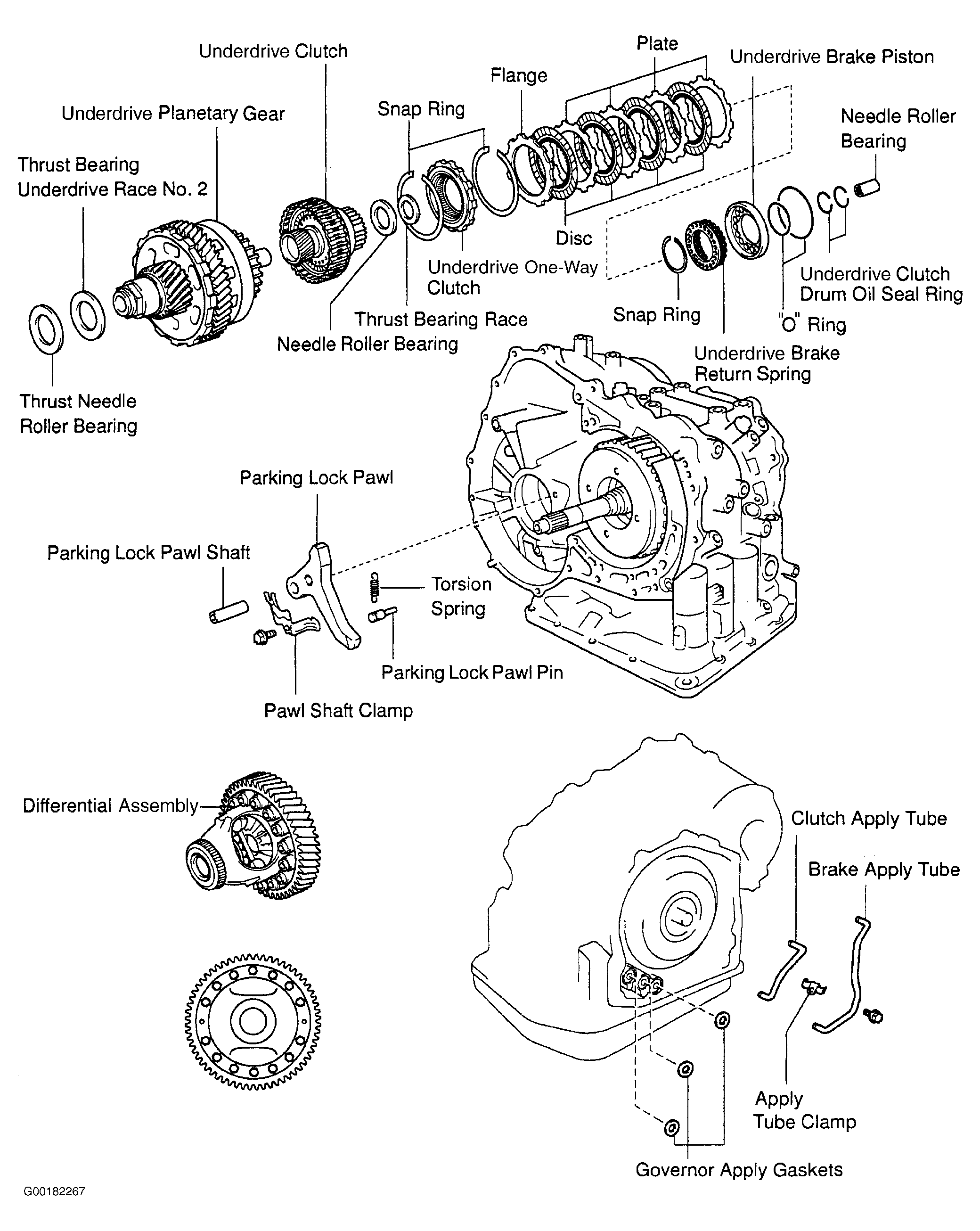 - Remove bolt, clamp and apply tube. Remove clutch apply tube. Remove brake apply tube from clamp. See Fig 15 and Fig 22 . Remove direct clutch with thrust bearing from transaxle case. Remove thrust bearing race, thrust bearing and overdrive direct clutch hub from planetary gear. See Fig 14.